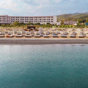 Het luxe Hotel Mitsis Ramira Beach is onderdeel van de Mitsis keten. Het is een fijn familiehotel, een echt vakantieparadijs voor het hele gezin. Het hotel wordt slechts door een weg gescheiden van een (kiezel/rots)strand, maar met twee grote zwembaden biedt het hotel zelf ook genoeg mogelijkheden om van de Griekse zon te genieten. De comfortabele kamers van Hotel Mitsis Ramira Beach zijn gezellig ingericht. Er is onder andere veel hout gebruikt, waardoor de uitstraling warm en knus is. Lekker lang in die fijne kamer blijven kan hier gewoon, want het uitgebreide all inclusive programma heeft ook een uitslapersontbijt. Culinair genieten is sowieso belangrijk in dit hotel; je hebt er de keuze uit een internationaal, Italiaans en Chinees restaurant.Voor een flinke dosis ontspanning of vermaak heeft Hotel Mitsis Ramira Beach veel faciliteiten. Zo is er bijvoorbeeld een gamesroom, maar kun je ook actief zijn op de tennisbaan of kiezen voor een potje paintballen. Kinderen komen hier ogen tekort! En terwijl zij zich vermaken in de (kinder)disco, heb je zelf alle tijd om te proosten op het terras van de sfeervolle Sunset Lounge Bar.
